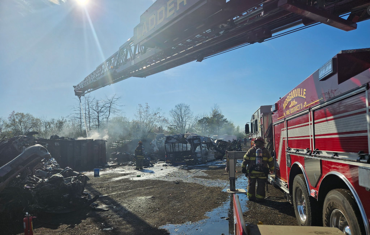 A coordinated effort by the Morganville Fire Department prevented a debris fire from turning into a major environmental crisis at a Tennent Road auto salvage yard on the afternoon of April 16.